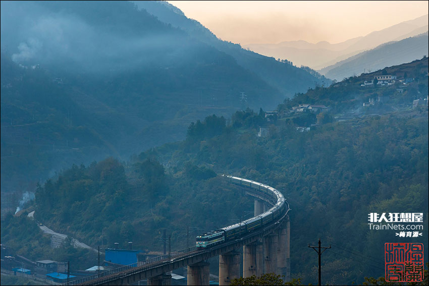 2025年11月,成昆线,成局西段SS3最后一次牵引5620次列车(普雄-峨眉)驶过铁马大桥。