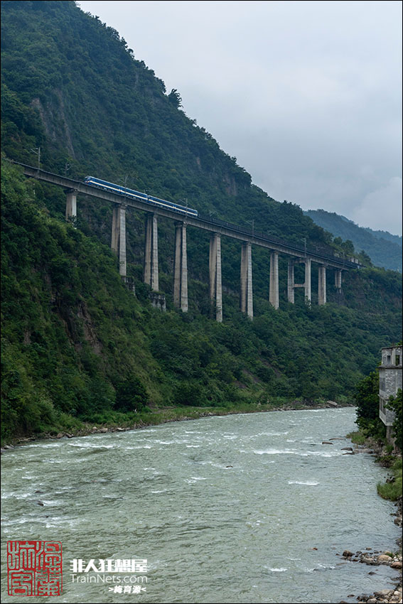 2025年10月,内六线,在大关站加挂补机后的下行货列行驶在洛泽河谷。