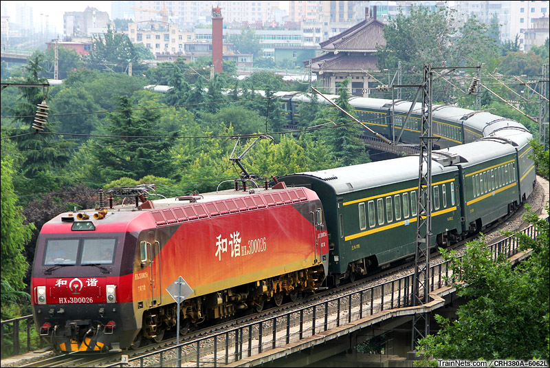 2015年8月16日。宝鸡市西关立交桥。 HXD3D牵引Z164次,上海-拉萨。(图/CRH380A-6062L)