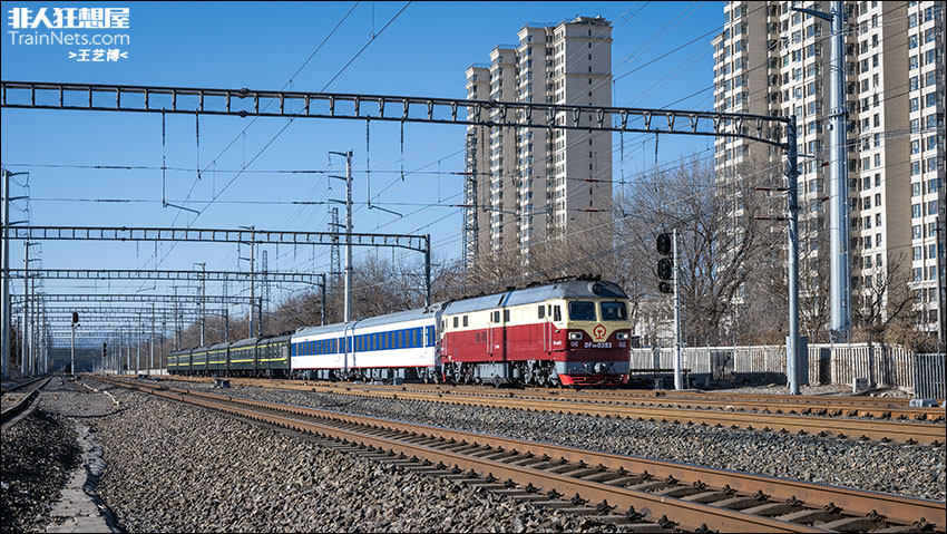 2025年12月,京沪线,6438次(大涧-北京西)加挂中朝联运车底,为国际列车复开做准备。