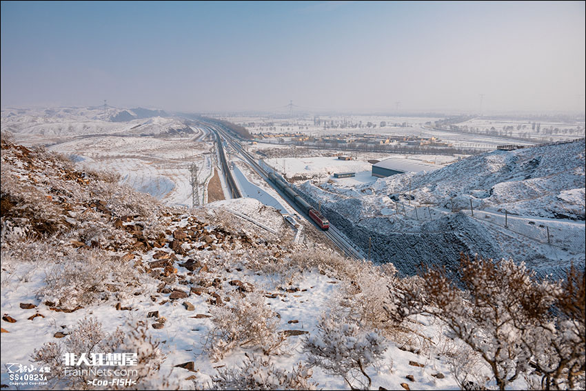 2026年1月1日,包兰线。SS7E-0112牵引7531次列车(银川-中卫)驶过著名的胜金关。一场大雪过后,天空逐渐放晴。