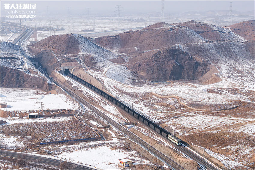 2026年1月4日,包兰线,SS3 5212牵引煤炭货列穿过胜金关,山上的两道长城遗址在数百年后的今天仍旧依稀可见。