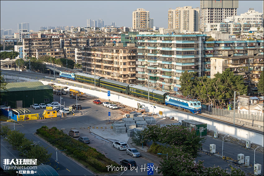 2025年12月1日。广东广州。检测完湛江北动车所动走线的检测车经广湛高铁下行线反方向回送至广州白云站,特别的是,为了提高换端效率,使用了双头SS8进行编组,不失为广湛铁路的检测增加亮点。