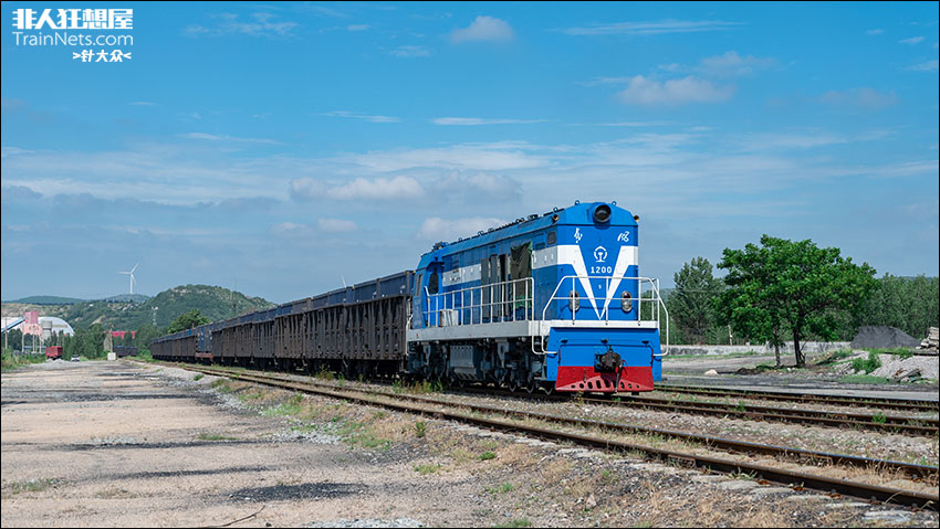 2025年7月9日,山东枣庄,鲁南中联水泥有限公司专用线,水泥厂自备车DF5-1200在编组站展开调车作业。