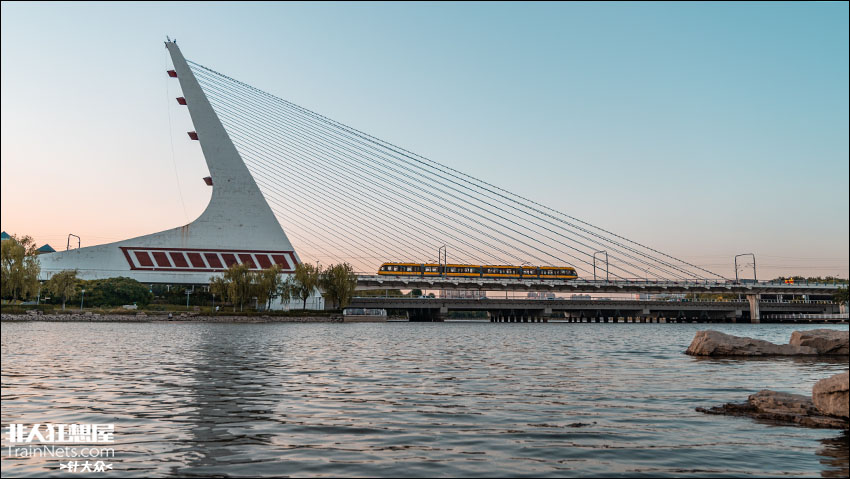 2025年7月14日,吉林长春,日落时分,三号线列车跨越伊通河,接近职业学院站。