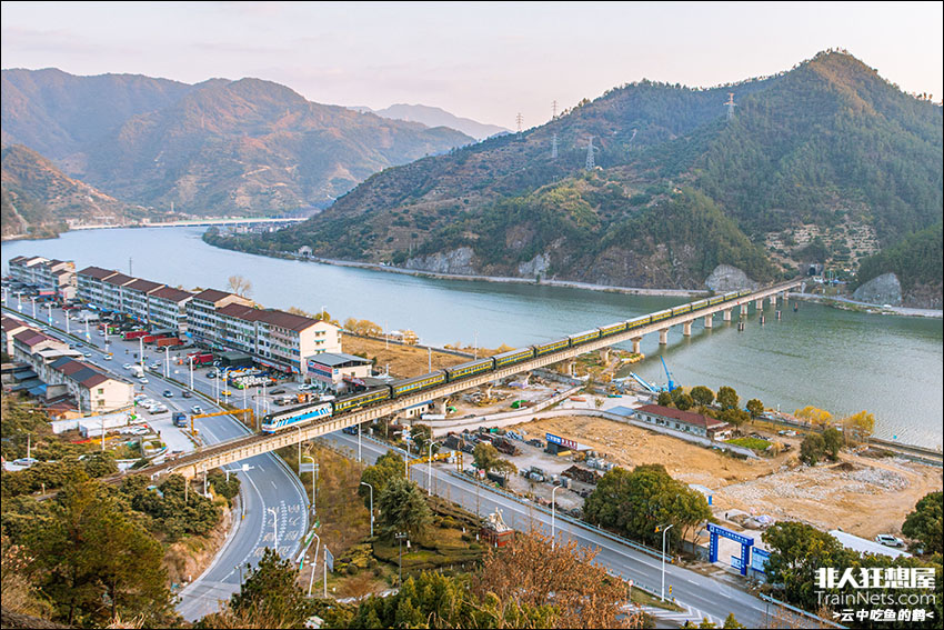 2026年1月,金温铁路。K1396次列车(温州-太原)驶出燕山隧道,越过大溪,接近丽水站。
