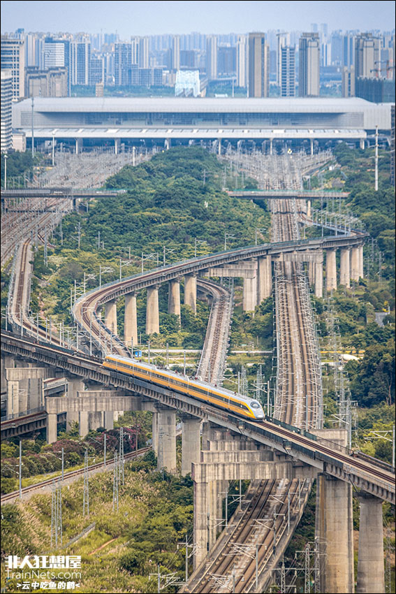 2024年6月。沪昆高速线南昌西站。“黄耗子”CRH380AJ-0203经昌九城际在南昌西折返,前往长沙南过夜。
