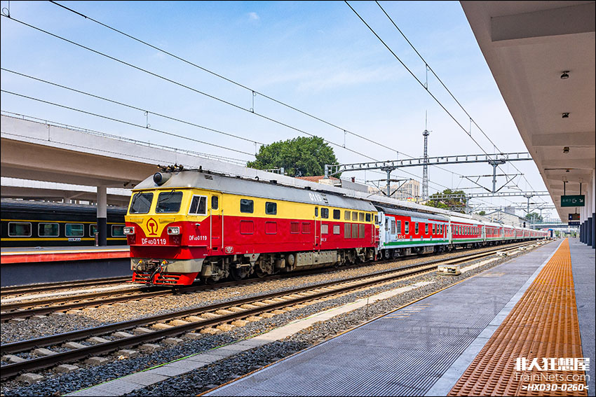 2025年6月27日,哈尔滨东站。 DF4D-0119牵引0Y682次“呼伦贝尔号”车底(哈尔滨北-哈尔滨东)。