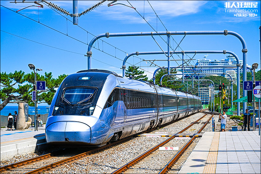 2025年8月,首尔开往江陵的KTX-EUM 845号列车驶入世界上离海最近的车站——正东津站。