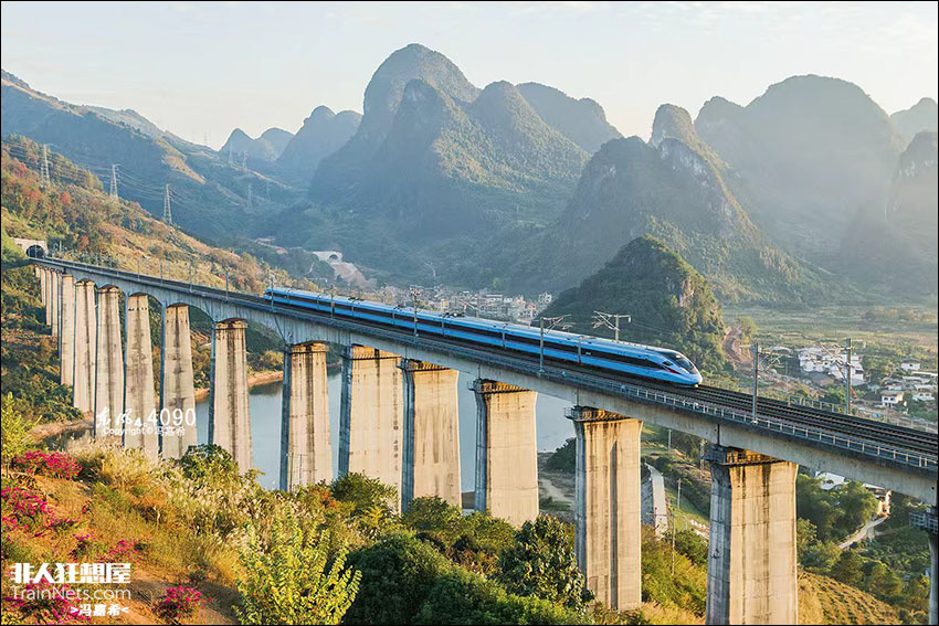2025年11月,贵广客专,CR300AF通过阳朔幸福源水库特大桥。