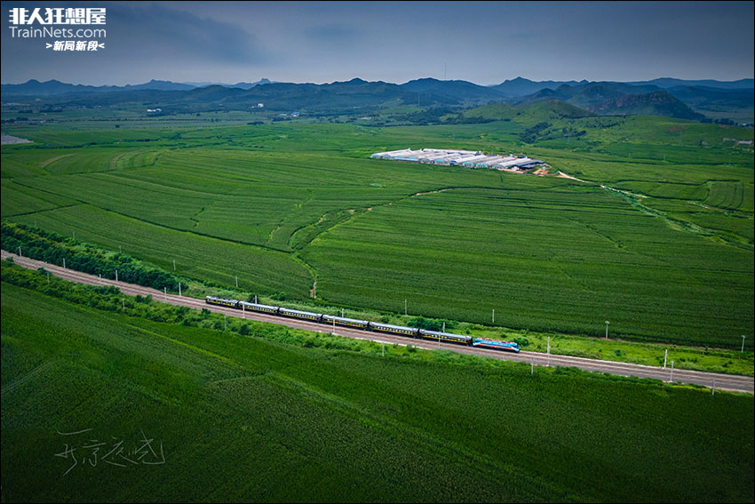 2025年8月。沈局辽段SS9-0037牵引K7501次(锦州-阜新南)行驶在锦承铁路锦州义县境内,线路周围一望无际的田园草地仿佛置身于内蒙古辽阔的草原之中。