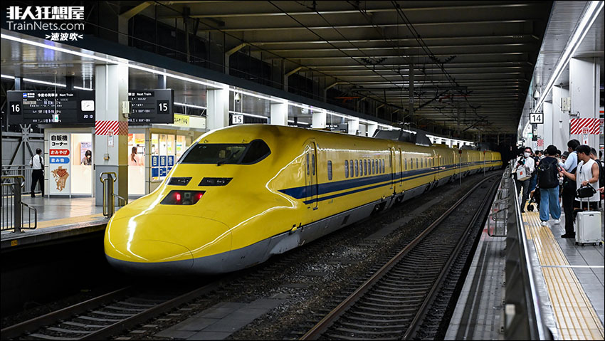2025年8月6日,博多站。JR西日本923形T5编成担当のぞみ下行检测进15站台。