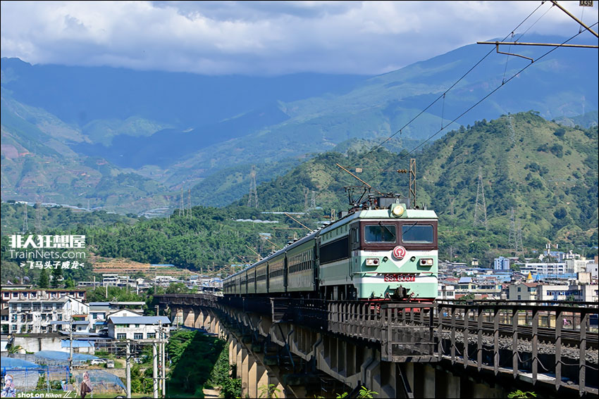 2025年10月5日,SS3-8057牵引5633次列车经过成昆铁路丙谷大桥。