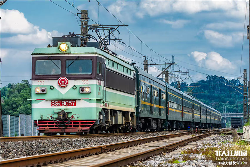2025年10月,成都铁路局西昌机务段韶山3 8057号机车牵引5620次列车(普雄-峨眉)通过九里站。