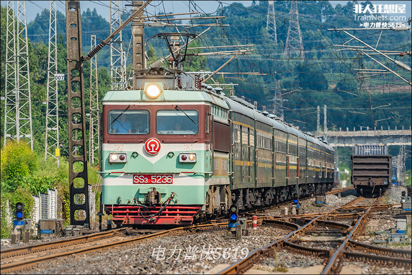 2025年9月15日,成昆铁路,韶山3 5236号机车牵引5620次列车(普雄-峨眉)通过九里站。