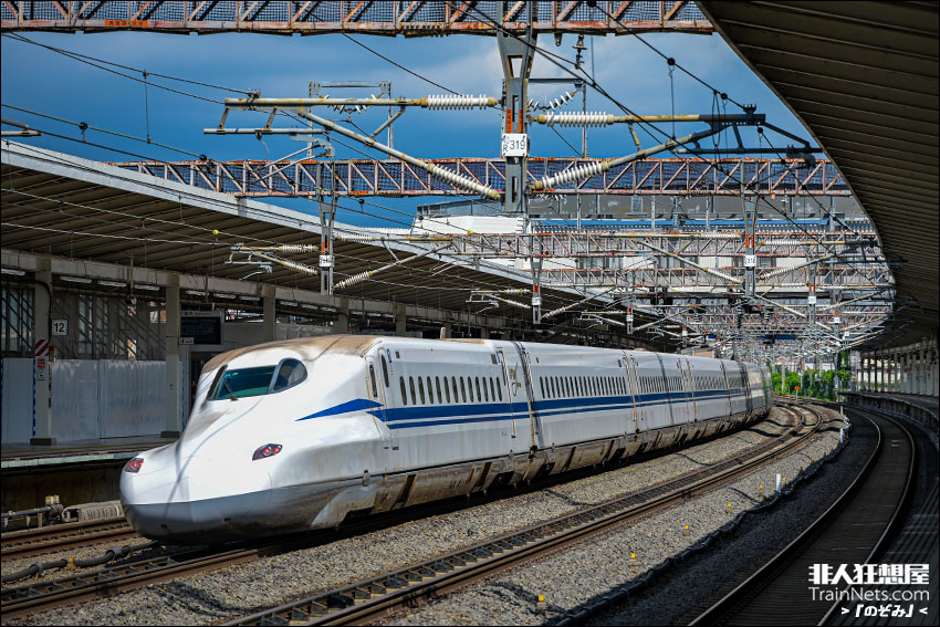 ​2025年10月1日,东海道新干线米原站。JR西日本第一批N700S担当的Nozomi号高速通过。