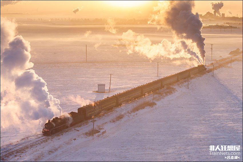 2026年1月20日,金色阳光下,上游1772与KD6-487共同推挽的调兵山蒸汽旅游列车。