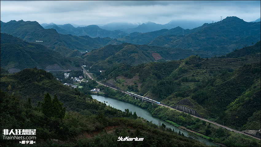 2025年10月16日,贵州省铜仁市,7271次(梅江-怀化)行驶在沿小江而行的渝怀铁路上。