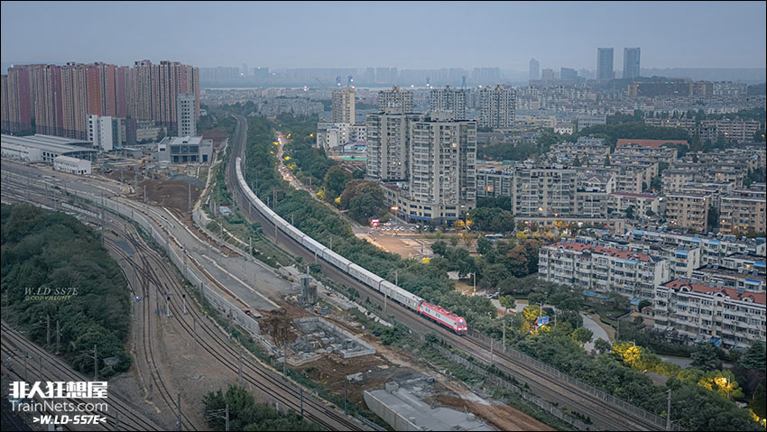 2025年10月,江苏南京。夜色将近,X111次驶离南京长江大桥,接近南京站。
