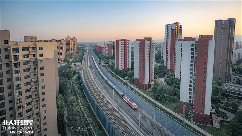 2025年8月,宁夏银川。落日余晖之下,兰局迎段SS7E牵引K1088次(长沙-银川)银川站接近。