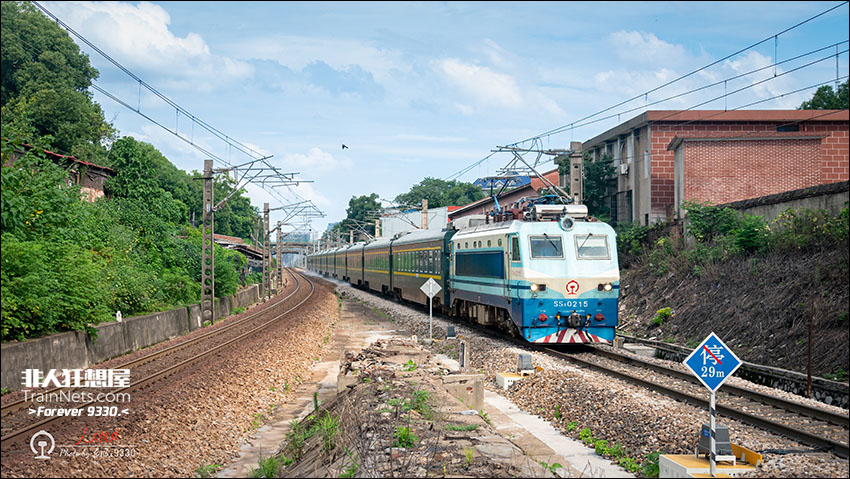 2025年6月29日。京广铁路。广铁长段SS8-0215牵引末班Z8316次(长沙-石门县北)飞驰而过。