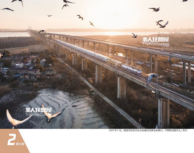 2025年1月。湖蓝双层在日出之际通过芜湖北裕溪口。