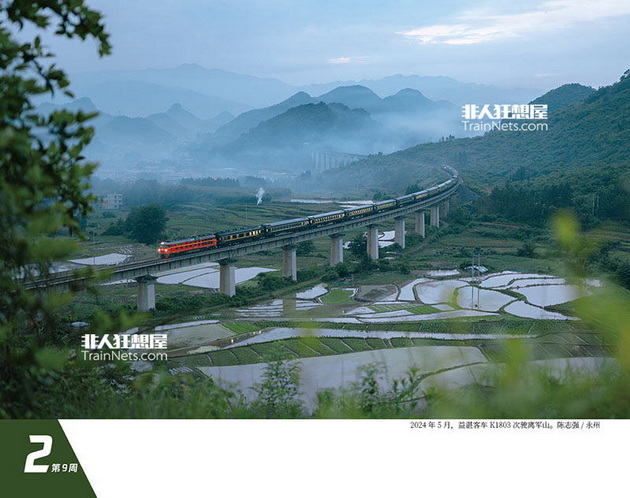 2024年5月,立夏次日,益湛客车K1803次(武昌至湛江)徐徐驶离军山,此时新圩江镇炊烟升腾,如同仙境一般。