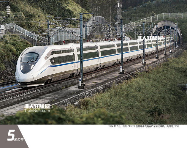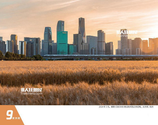 2024年5月16日,杭州。重联CRH380B担当的G1363次(上海虹桥-长沙南)驶过钱江世纪城。