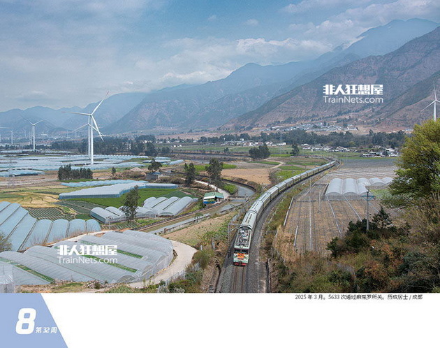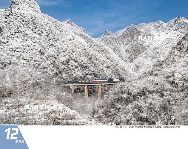 2024年2月,宝成线,K545次(佳木斯-成都西)行驶在雪后的观音山展线。