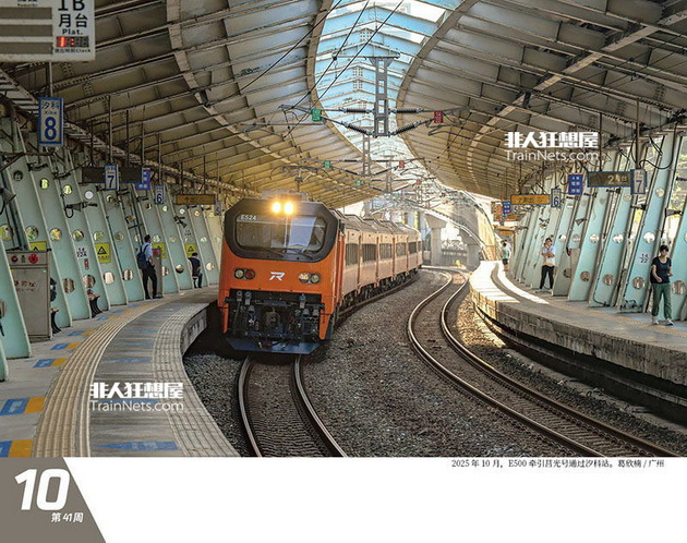 2025年10月13日,台铁纵贯线,E500型电力机车牵引521次莒光号列车通过汐科站的S弯。随着日制E500的配属增加,原有的美制E200-400型电力机车变得愈发少见。