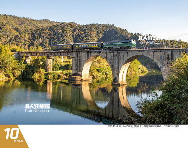 2025年11月,安徽黄山,8467次通勤车(黄山-倒湖)驶过倒湖十八弯的民国时期铁桥,接近终点倒湖站。