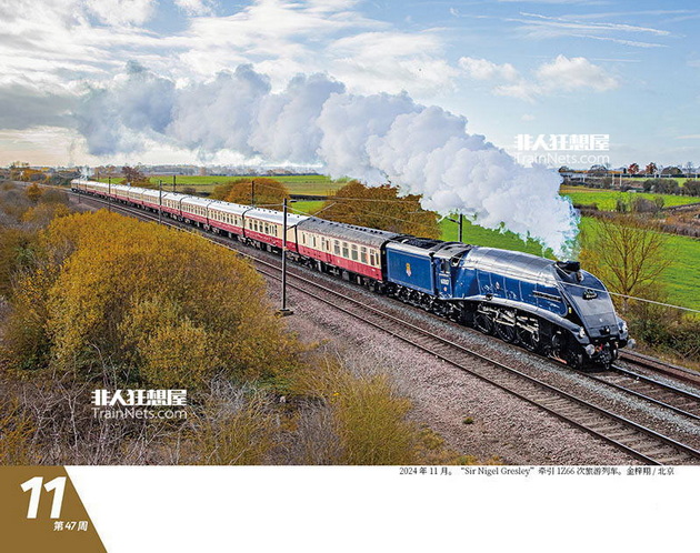 2024年11月。A4型蒸汽机车60007 “Sir Nigel Gresley”牵引1Z66次旅游列车。