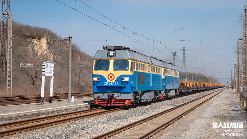 2024年3月,北京西北环线,京局丰段DF4C-4246及京局京段DF4C-4402机车牵引长钢轨列车调中57238次通过寨口车站。