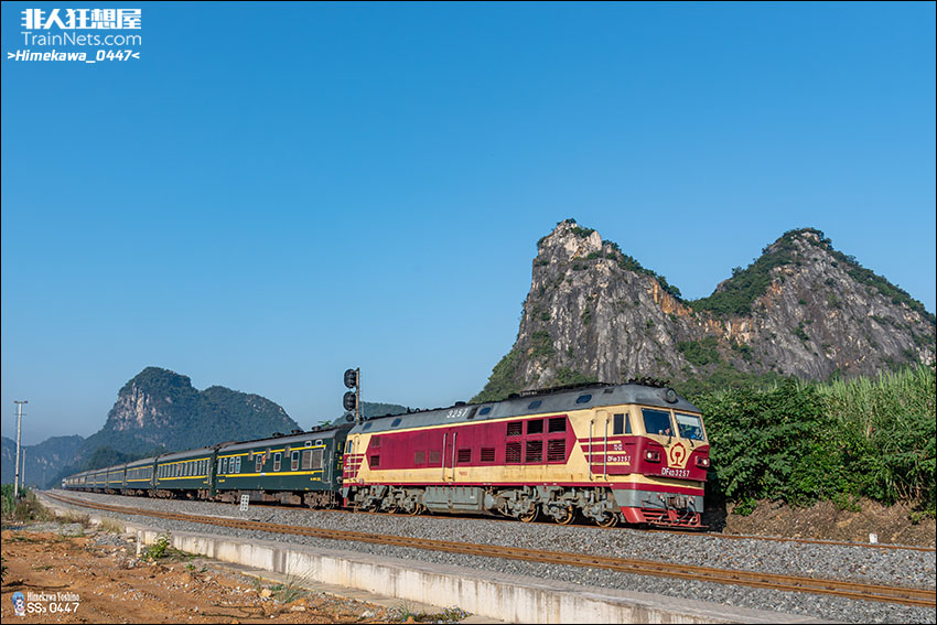 2025年11月15日。湘桂线。DF4D-3257牵引客车T8702次(河内(嘉林)-南宁)接近渠黎站。列尾附挂国铁集团轨道检查车WX25T-999304。