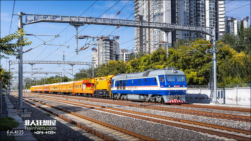2025年8月24日,DF8B-5397号机车牵引中57142次(黄土店-丰台西)路用列车(京局救援)行驶在百星联络线上。