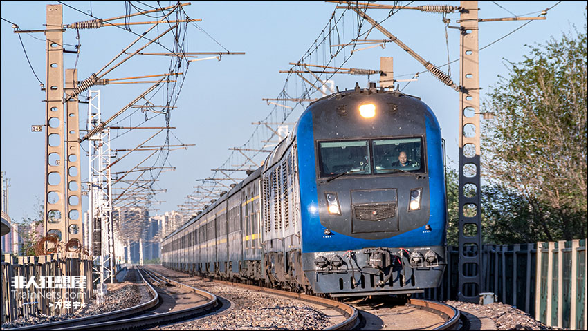 2023年4月30日,北京市,北京广线。客车Z38次(武昌-北京西)接近终点站北京西站。