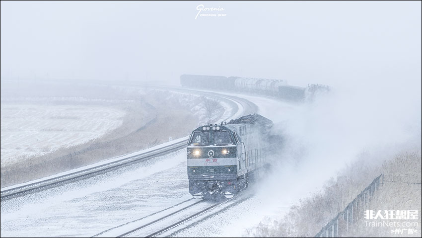 货运列车驰骋在冬季的沃野之中