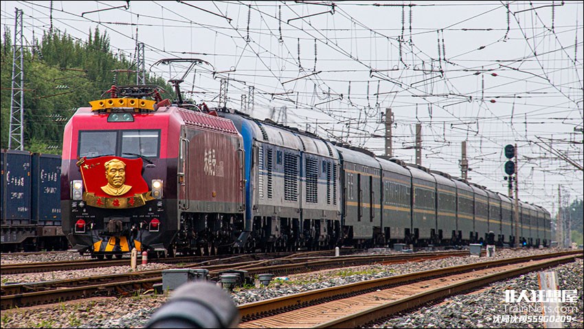 2022年7月,京哈线虎石台站,因特殊原因当日Z158次(哈尔滨西-泰州)本务朱德号附挂哈局佳段DF11G0213/0214号通过虎石台站,去往沈阳北站方向。