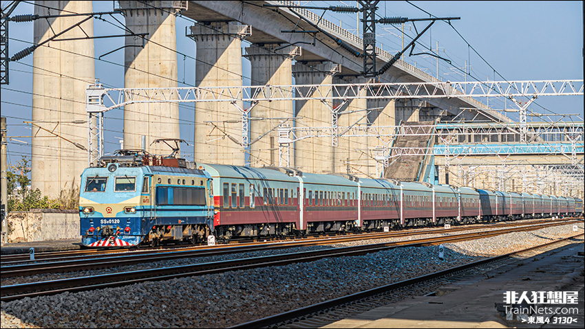 2025年1月初。广深线。广段唯一在运用的“方灯”SS8牵引“丝路梦享号”旅游列车接近广州新塘站。