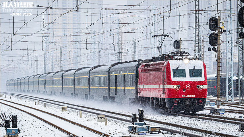 2026年1月底。陇海线。SS7E牵引Z374次(乌鲁木齐-昆明)雪中达速通过。