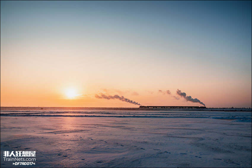 2026年1月31日。第16届调兵山蒸汽机车旅游节,王和中桥日出专列在王和中桥往返运行表演。