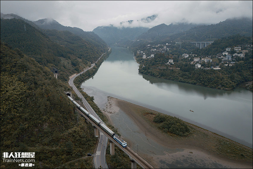 2025年9月。贵州铜仁。7271次(怀化-梅江)行驶在渝怀线沿江段。