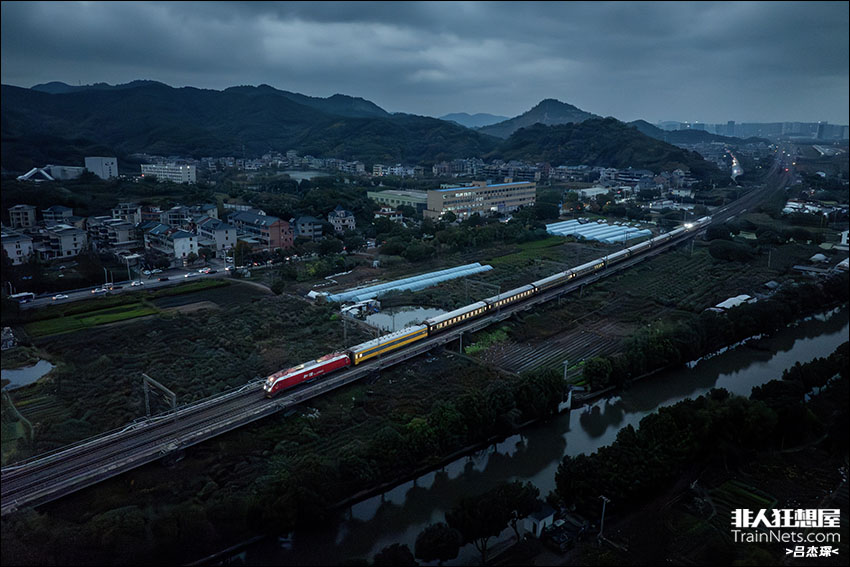 2025年11月17日,傍晚,晚点许久的55193次驶过沪昆线萧山站。