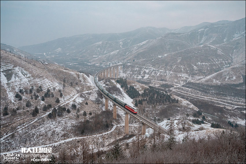 2026年1月4日,宝中铁路。SS7E牵引K628次列车(固原-兰州)行驶在六盘山-三关口区间,新年的第一场大雪覆盖了连绵的六盘山。