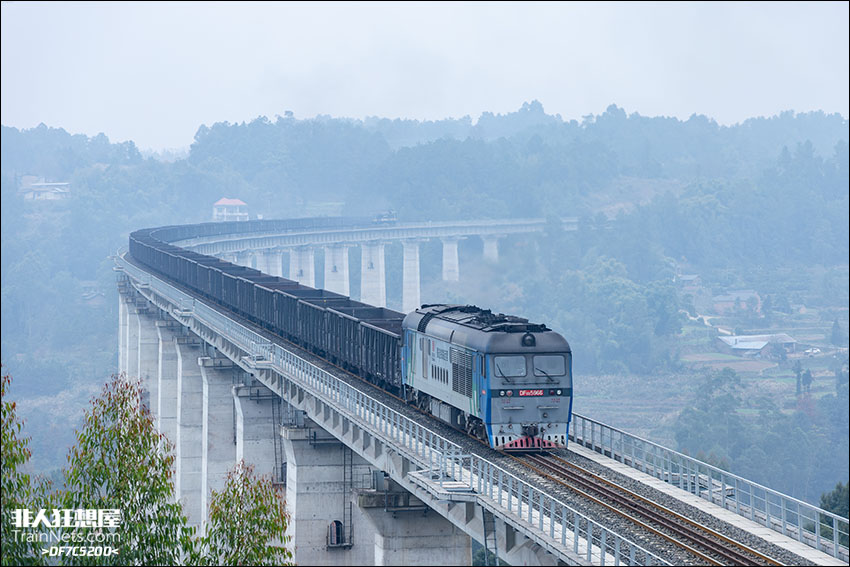2025年12月18日,蜀道铁路DF8B双机推挽货列运行在连乐线上。