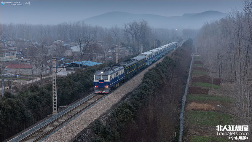 2026年1月,第三代“周恩来号”机车DF11-1898牵引双层客车K8598次行驶在符离集镇北郊的符夹铁路。