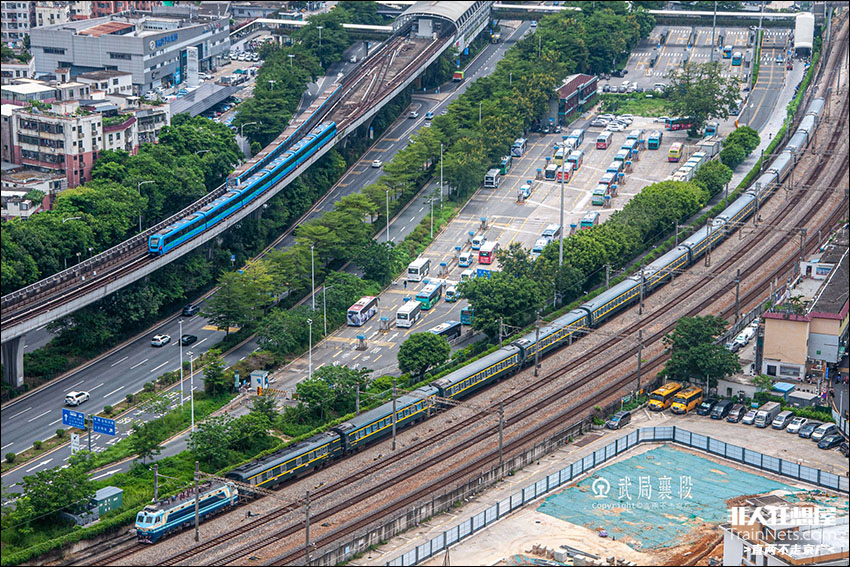 2025年7月5日,广深线,广铁广段SS8-0184牵引0K952深圳东站接近,和旁边的深圳地铁3号线新车同框。