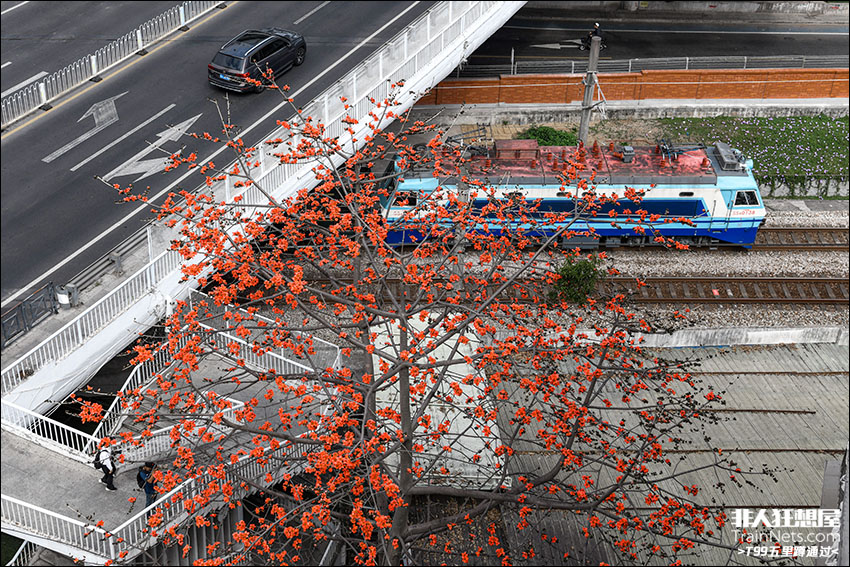 K1207次机车驶过木棉花树
