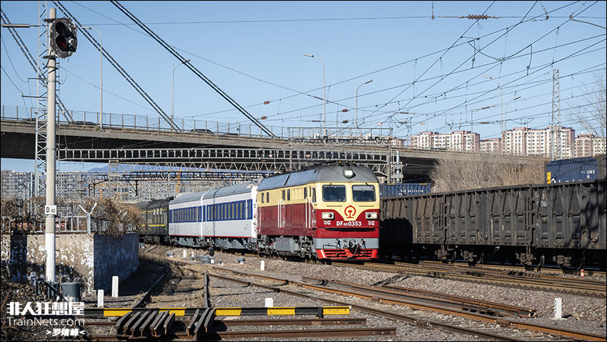 2026年1月18日,筹备开行中朝国际列车阶段,安排中方软卧返回唐山厂进行一次全面的A5整修。由DF11牵引两节国际客车,开行00483次,由北京前往唐山南。(图/京丰某琛)