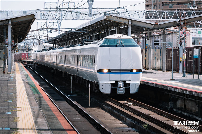 2025年9月,湖西线大津京站,特急雷鸟683系列车通过。